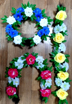 При необходимости менеджеры нашей компании подберут для вас оптимальное количество и различные виды ритуальных принадлежностей, подобрав различную цветовую палитру и размеры ритуальных венков и корзин из искусственных цветов на похороны по низким ценам и другую продукцию продаваемую крупным и мелким оптом, необходимую для ведения собственного бизнеса. Ритуальные венки, корзины, букеты из искусственных цветов и их фото можно посмотреть в каталоге.